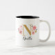 Monogram Pink Floral Initial Letter N Two-Tone Coffee Mug