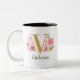 Monogram Pink Floral Initial Letter V Two-Tone Coffee Mug
