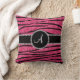 Monogram pink glitter zebra stripes circle cushion