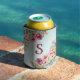 Monogram Pink Hibiscus Flowers Tropical Floral Can Cooler