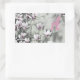 Monogram Pink magnolia branch drawing grey black Rectangular Sticker