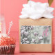 Pink Customisable Monogram Text on an elegant and chic magnolia flowers blooming branch hanging down from a magnolia tree, on a black grey white background. This is a drawing