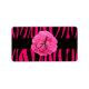 Black and hot pink zebra stripes pattern background with black stripe, pink peony flower and monogram letter change to any letter a,b,c,d,e,f,g,h,i,j,k,l,m,n,o,p,q,r,s,t,u,v,w,x,y,z