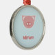 Monogram pink piglet on blue metal ornament