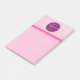 Personalise with your monogram initial and name on a purple circle. The background is pink with cute little white polka dots. The bottom half has a pink gradient border with a solid pink writing area.