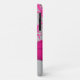 Monogrammed modern hot pink and silvery grey floral damask pattern iPhone 11 case with PRINTED ribbon and PRINTED faux engraved look crystal brooch. Personalise it to add your name, initial, or other text. If you need assistance, email niteowlstudio@gmail.com.
