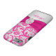 Monogrammed modern hot pink and silvery grey floral damask pattern Vibe™ iPhone 6 case with PRINTED ribbon and PRINTED faux engraved look crystal brooch. it to add your name, initial, or other text. If you need assistance, email niteowlstudio@gmail.com.