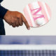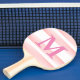 Monogram pink stripe ping pong paddle.