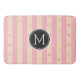 Monogram Pink Stripes Modern Heart Pattern Bath Mat