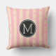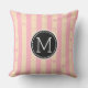 Monogram Pink Stripes Modern Heart Pattern Cushion