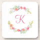 Monogram Pink, Yellow and Green Floral Watercolor Coaster