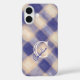 Monogram plaid gingham navy blue cream handwritten Case-Mate iPhone case