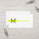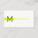 Monogram Plain White Elegant Modern Chartreuse Business Card