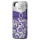 Monogrammed modern purple and silver grey floral damask Case-Mate Vibe™ iPhone 5 Case with PRINTED ribbon and PRINTED jewel brooch. Customise it to add your name, initial, or other text. If you need assistance, email niteowlstudio@gmail.com.