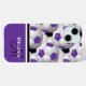 Add your monogram initial and name to this eye-catching and stylish football soccer ball design featuring a pattern of black and white and purple and white soccer balls with accents in coordinating purple, black and white.