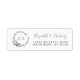 The left-hand side of this wedding invitation return address label features the bride and groom's monogram initials in purple surrounded by a wreath of green foliage and purple flowers. Add your names in purple handwriting script and your address in charcoal grey sans serif font.