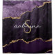 Elegant purple agate trimmed with faux gold glitter combine in this design. Personalise it with your monogram initial in gold coloured decorative font and your name in white handwriting script.