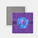 Monogram purple leopard blue rose magnet