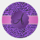 Monogram purple leopard print classic round sticker