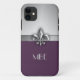 Monogram Purple Silver Faux Metal Fleur de Lis Case-Mate iPhone Case
