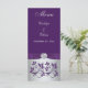 This elegant and affordable purple and silver grey floral menu card has a PRINTED ribbon and a silver faux engraved PRINTED medallion on it that matches the wedding invitation shown below. It is designed on a rack card with a glossy front, and matte finish on the back. If you would like a menu card on invitation paper to match your invitations, or if you have any requests for additional items or changes, please email niteowlstudio@gmail.com with your request.