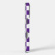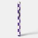 Cool iPhone case features a bold purple and white chequered pattern with a customisable monogram. Add (or delete) 3 initials or numbers in the sidebar to personalise it. The geometric chequerboard pattern is made of rows of alternating white and royal purple squares. Other case styles and models also available in the sidebar.