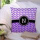 Monogram Purple White Chevron Pattern Bold Modern Cushion
