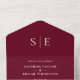 This chic minimalist all-in-one wedding invitation can be personalised with your monogram initials and wedding day information on a burgundy background. The invitation includes a perforated RSVP card with your wedding website QR code and details. Designed by Thisisnotme©