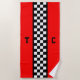 Monogram Race Car Chequered Pattern with Red Beach Towel