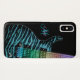 Cyan Blue Monogram Rainbow Neck Guitar on Black iPhone X Case. A great gift for your favourite guitar player, musician or music lover.