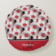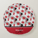 Monogram Red Black and White Soccer Ball Pattern Round Cushion