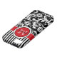 Monogrammed modern and trendy red, black, and white stripes with damask Case-Mate Vibe™ iPhone 5 Case.