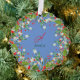 Monogram Red Christmas blue Classic Round Tree Decoration Card