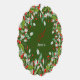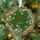 Monogram Red Christmas Greenery Classic Round Ornament Card