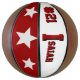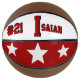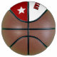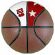 This is a full size basketball with two panels designed with a monogram name (large first letter) and uniform number, in popular college colours. This one is shown in Crimson Red and Cream. The second panel has team colours with three stars. All text, art, and colours can be removed, or changed as desired. One panel can be left white for autographs, etc.