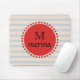 Monogram Red Gold Striped Circle Mouse Pad