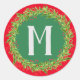 Monogram Red & Green Wreath Christmas Holiday Classic Round Sticker