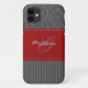 Stylish monogrammed modern grey and red damask pattern with stripes Case-Mate Barely There™ iPhone 5 Case can be customised with your logo, name, initial, or other text. If you need assistance, email niteowlstudio@gmail.com.
