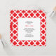 Monogrammed red and white quatrefoil pattern bridal shower invitations. Red quatrefoil pattern on a white background.