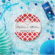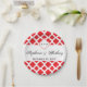Monogram Red Quatrefoil Pattern Wedding Paper Plate