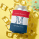 MONOGRAM Red White Blue stripe Solid Colour Can Cooler