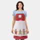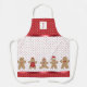 Red & White althernating / inverted polka dots from steam to seam, with red metallic faux foil print ribbon separators at each transition, and five adorable gingerbread people lined up along the bottom of this classic Christmas Apron. Add your initial with the personalise this tool to really make this apron special.