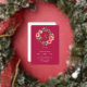 Monogram Red Wreath Botanical Christmas Party Gold Foil Holiday Card