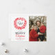 Monogram Red Wreath Merry Christmas Photo Holiday Card