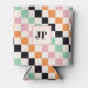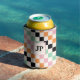 Monogram Retro Chequerboard Custom Monogrammed Can Cooler