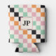Monogram Retro Chequerboard Custom Monogrammed Can Coolers features a colourful chequerboard pattern in green, pink, orange, black and white with your personalised monogram. Personalise by editing the text in the text box provided. Perfect gift for golfers for birthday, Christmas and more. Designed by ©2024 Evco Studio www.zazzle.com/store/evcostudio
