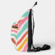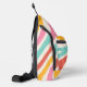 Carry your essentials in bold, vibrant style with this unique personalized sling bag. Featuring a striking, colorful pattern of retro wavy stripes in shades of pink, coral, yellow, and turquoise, this bag is a functional fashion statement. The design is customized with a minimalist black circle logo bearing your chosen monogram (the 'AMW' shown is a placeholder for your initials). It's the ideal accessory for daily adventures, travel, hiking, or stowing tech gear while showcasing your unique flair. Elevate your accessory game and make a statement with this vibrant, custom sling bag today.