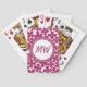 Monogram Retro Flower Pattern Acai Pink and White Playing Cards