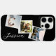 Create your own custom photo collage iPhone Case. Simply add 3 of your favourite pictures to this collage template featuring retro instant photo style frames and personalised monogram name in elegant script typography.