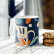 Monogram retro mid century 70ies teal navy blue daisy vintage modern retro style personalised name coffee mug bridesmaid gifts bridal party favours